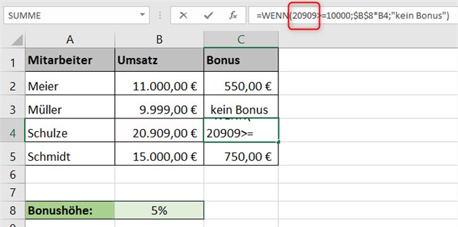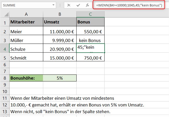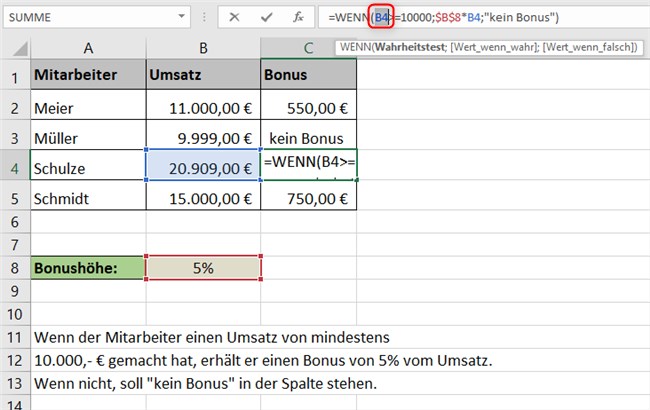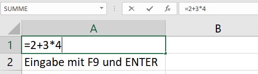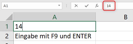 F9 berechnet die Eingabe und zeigt das Ergebnis direkt in der Zelle an. Die Berechnung wird so direkt durch das Ergebnis ersetzt.