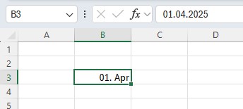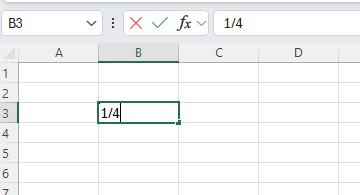 Geben Sie nur den Bruch 1/4 in eine Zelle, führt dies zu folgendem Ergebnis: