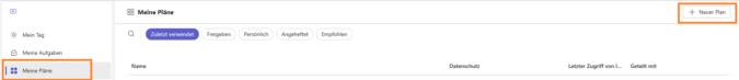 Öffnen Sie dazu den Planner, klicken Sie links auf „Meine Pläne“ und anschließend rechts auf „+ Neuer Plan“.