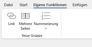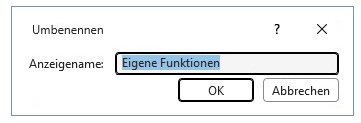 Nun erscheint eine neue Registerkarte direkt unter dem Tab Start. Mit einem Rechtklick darauf können Sie diese noch umbenennen und einen passenden Namen für die Registerkarte wählen. Wir nennen den neuen Tab vorerst Eigene Funktionen.