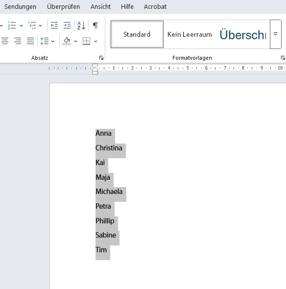 Auch eine Namensliste, die in Word erstellt wurde, kann mit dieser Funktion alphabethisch sortiert werden.